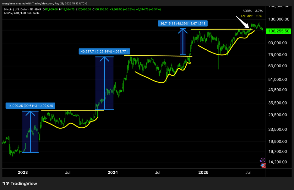 Below is a daily chart of Bitcoin from January 2023 to present.
