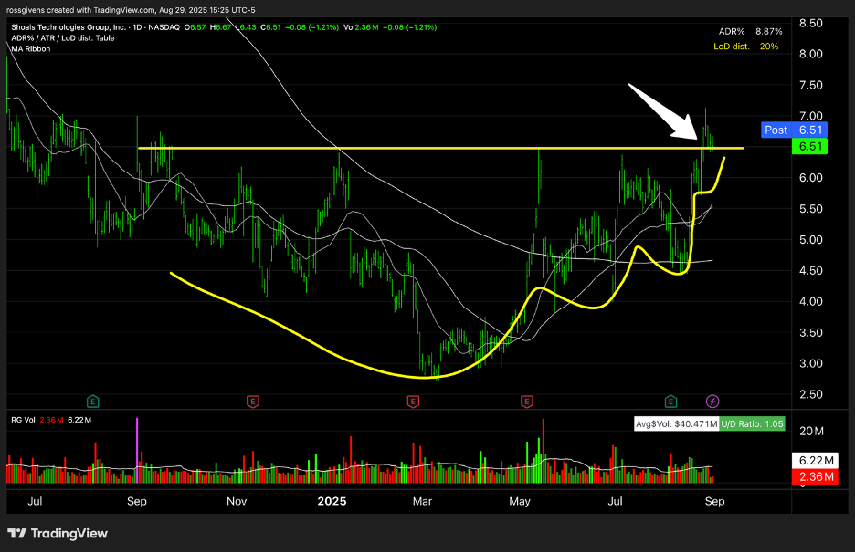 I took a position in Shoals (SHLS) last week on this breakout through $6.50.