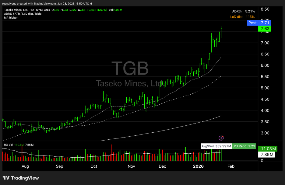 Taseko is a $2 billion Canadian operator whose stock is up over 90% in 90 days with no sign of slowing down.