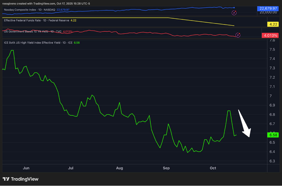 It kicked higher on Trump’s announcement last week but has now come back down to 6.58%.