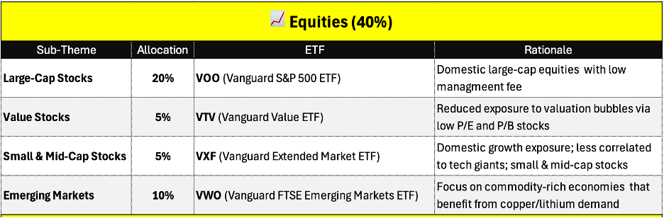 - 40% Equities