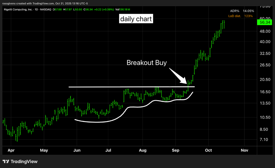 Take a look at Rigetti Computing (RGTI) – one of the big movers in the quantum computing space. Below is a daily chart highlighting the breakout that took place last month.