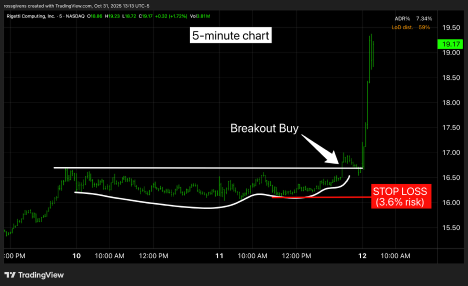 However, if we zoom into a 5-minute chart of RGTI at that time, look at what we see…