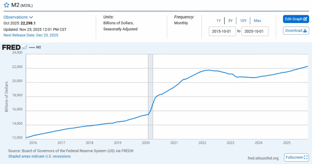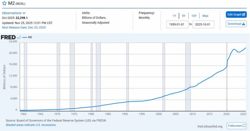 This is the M2 money supply – how much money is in the US economic system. $23 trillion and climbing.