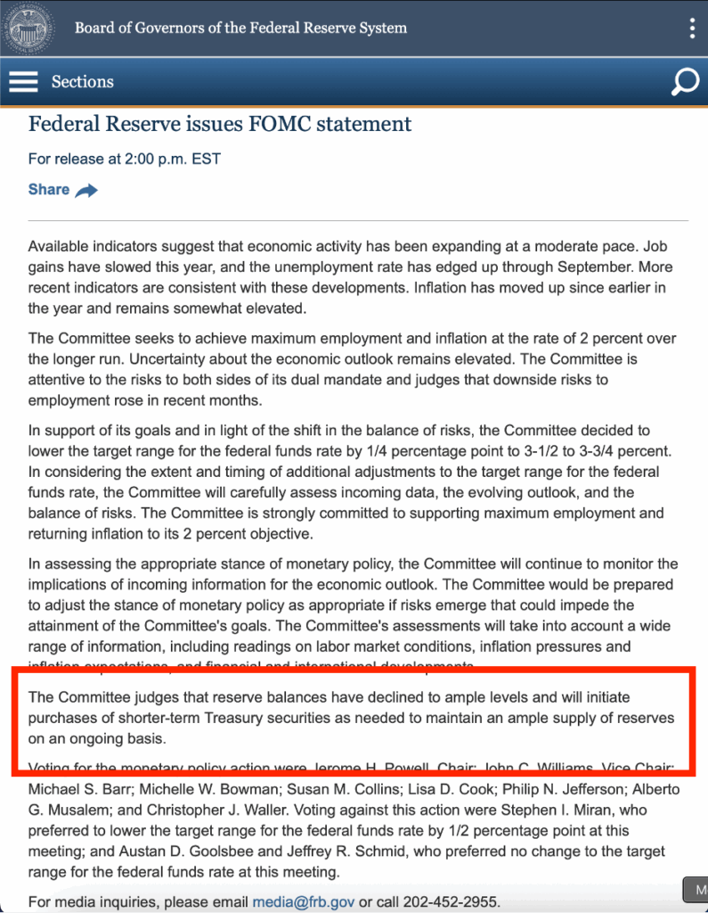 And will now “initiate purchases of shorter-term Treasury securities as needed to maintain an ample supply of reserves.”